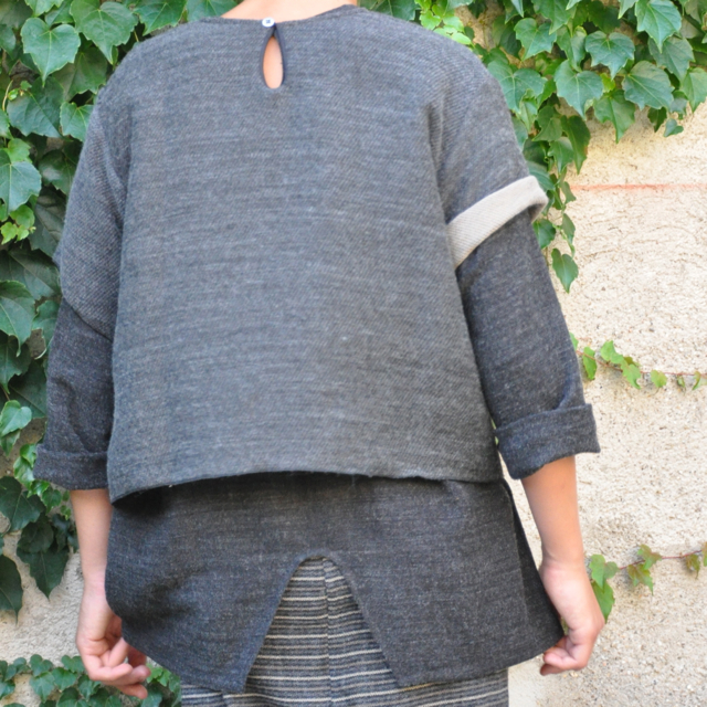 - une sur-blouse basique en lainage gris : le vestiaire de jeanne (en vente ICI)